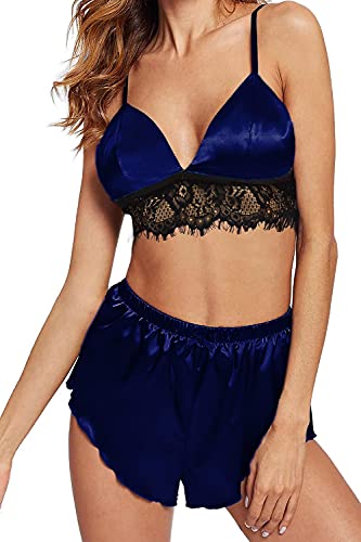 FG - طقم لانجرى بلون ازرق داكن- مقاس موحد -نساء