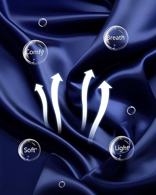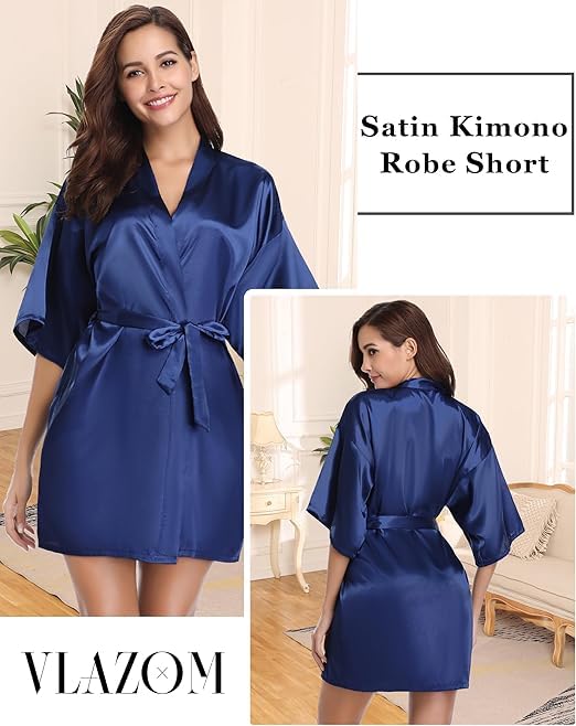 Generic - روب لانجري ساتان قصير باكمام واسعة للنساء باللون الازرق الغامق وان سايز من 50ل90 كيلوجرام
