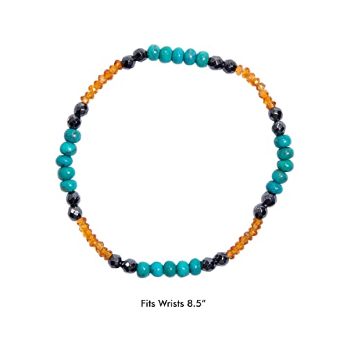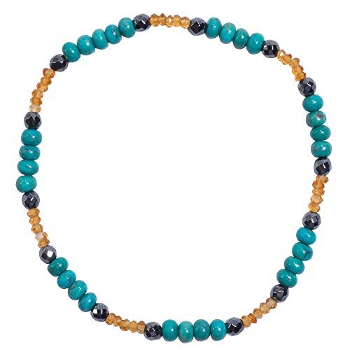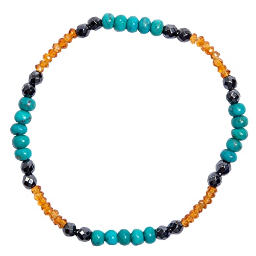 generic - Dark Gray Hematine, Sleeping Beauty Turquoise & Yellow Orange Citrine Beaded Gemstone Stretch Bracelet - Choice of Bracelet Size, Gemstone, hematite turquoise citrine