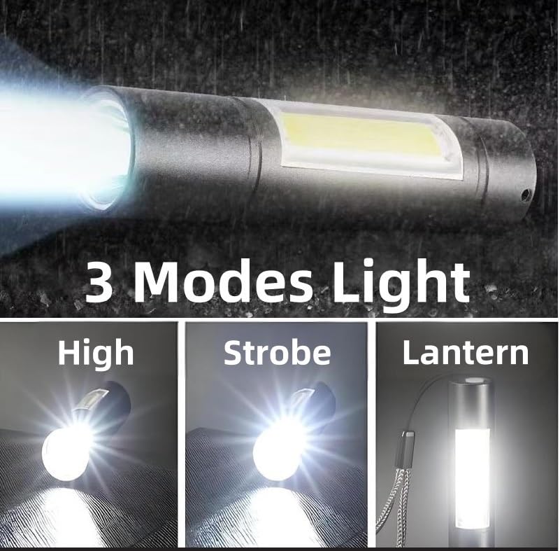 - إضاءة و3 أوضاع: مصابيح يدوية صغيرة ساطعة قابلة لإعادة الشحن، مصباح يدوي دارلور عالي السطوع قابل لإعادة الشحن مع 3 أوضاع إضاءة (عالية، وميض، وفانوس)، مناسب للمنزل والطوارئ والتخييم والمشي مع الكلاب، مريح جدًا في الاستخدام.