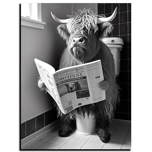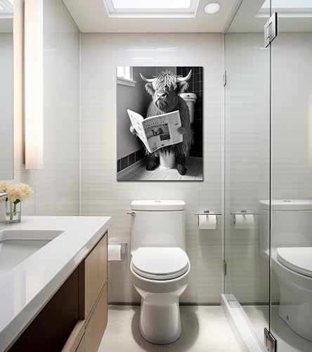 DARO Design - دارو ديزاين - صورة مرحاض على 6 ملم HDF 30 × 20 سم بقرة هايلاند المرحاض - صور تزيين الحائط هدية مضحكة