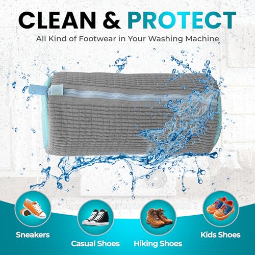 - 𝟑𝟔𝟎° 𝐏𝐫𝐨𝐭𝐞𝐜𝐭𝐢𝐨𝐧 𝐟𝐨𝐫 𝐘𝐨𝐮𝐫 𝐒𝐡𝐨𝐞𝐬: These shoe laundry bag are made with soft chenille microfiber that ensures a thorough clean while keeping your shoes safe from damage. They clean all sides of your shoes gently without causing any wear or tear