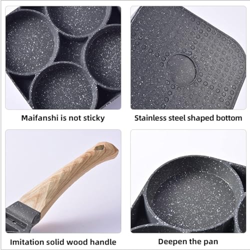 DAYANIDHI - DAYANIDHI Non-Stick Egg Fry Pan with Multi-Compartment Section Hole with Wooden Handle Compatible with All Stove Types Best for Making Omelette Pancakes Burger Patty Bacon (1Piece)