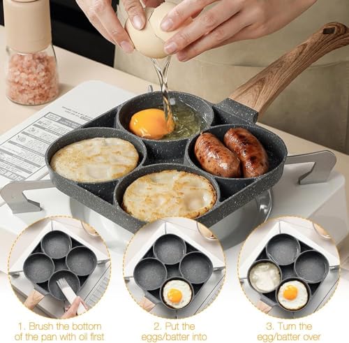 - Versatile Cooking: This 4-compartment frying pan is designed for making a variety of dishes like omelettes, pancakes, burger patties, and bacon, offering versatility in your kitchen.