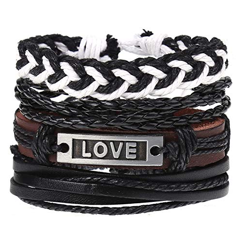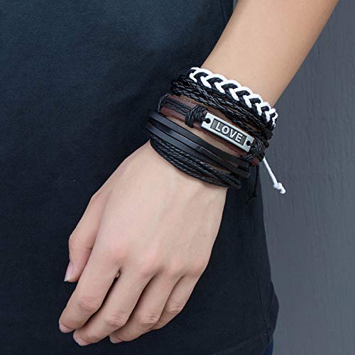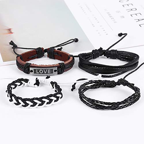 DAYONG - DAYONG Mixed Wrap Leather Wristbands Bracelets and Wood Beads Weave Bracelet Set for Men Women Adjustable 4Pcs Beads Braided Leather Believe Charm Bracelet for Men (Style 8)