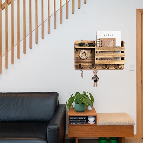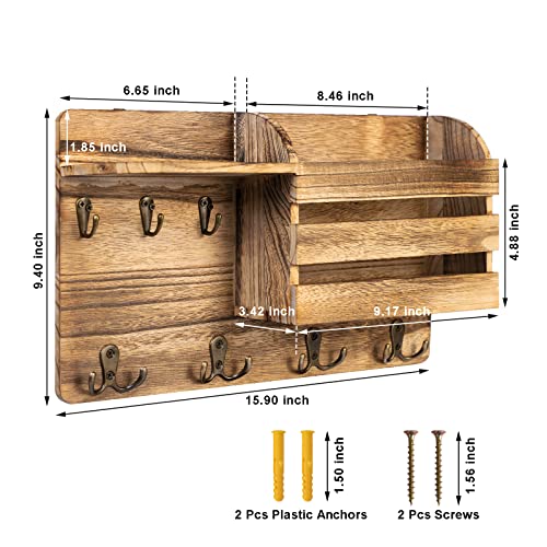 - Size and Package Included: You will receive 1 piece of wall key rack and a pack of mounting hardware, the size of the key and mail holder is 14.5 x 7.1 x 3.7 inches. This wall shelf with hooks will be a perfect gift for housewarming.