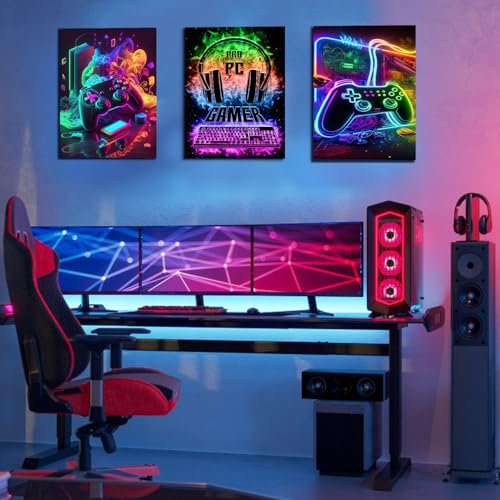Dazzlewall - 3Pcs Game Wall Art Prints Cool Neon Gaming Posters for Teen Boys Room Dorm Game Room Decor 12x16 in Unframed