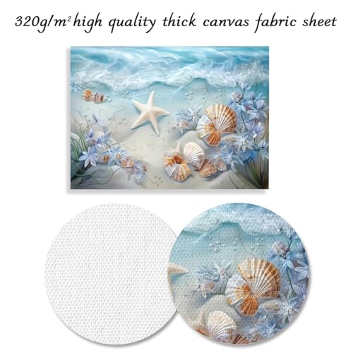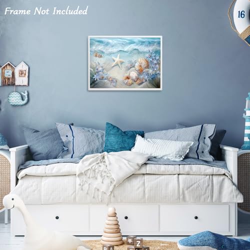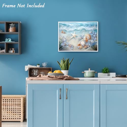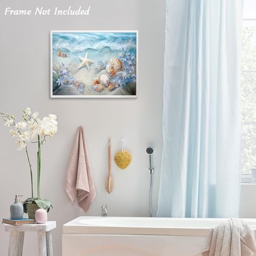 Dazzlewall - لوحة فنية جدارية على قماش من دازلوول بتصميم أمواج المحيط، مزينة بصدف البحر ونجوم البحر، ومناسبة للحمام وغرفة النوم وغرفة المعيشة، بمقاس 30 × 40 سم بدون اطار