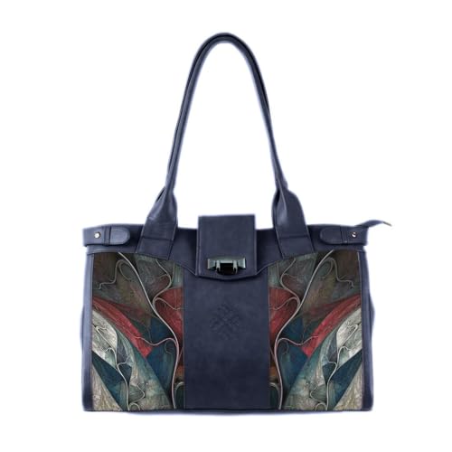 Generic - DB Illusion Double Handle Large Bag, Navy Blue with Artistic Pattern, Decorative Clasp
