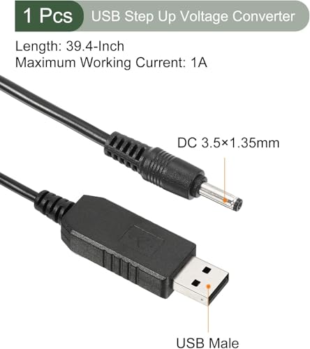 - √WHAT YOU GET - The package comes with 1pcs power cord, the total length is 1m/39.4", the wire diameter is 3.5mm/0.14", the power is 6W, the input voltage is DC5V, the output voltage is DC12V, the max output current is 1A, The connectors is USB A male to DC jack 3.5 × 1.35mm.