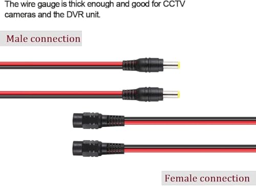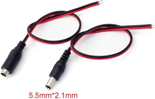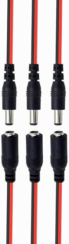 Generic - DC Power Cable 12V 5A Male and Female Connectors for CCTV Security Camera Pigtail Power Adapter Connectors (5.5mm x 2.1mm, 3 Pairs)