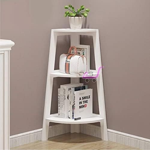 DDS Dream Decor Shoppee - 3Tier Corner Bookshelf Corner Ladder Shelf Small Bookcase Display Storage Organizer Stand Rack for Living Room Home Office (White)