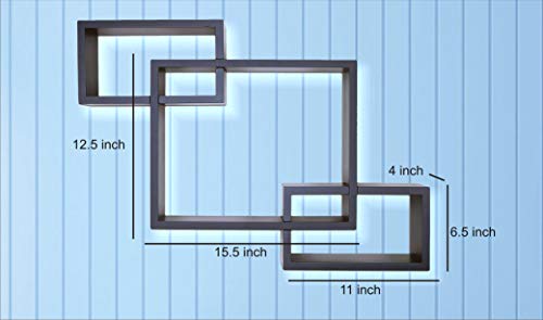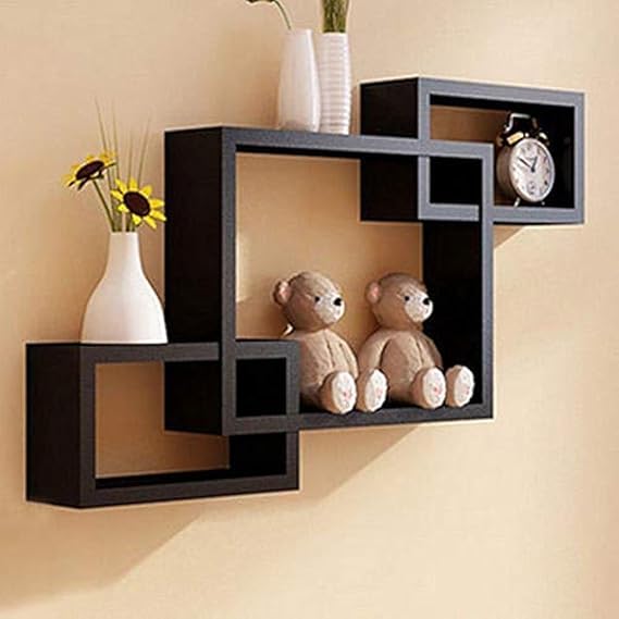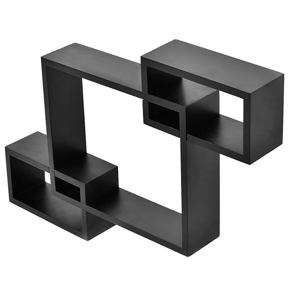 DDS Dream Decor Shoppee - Decorative Display Overlapping Floating Intersecting Wall Shelf for Living Room Set of 3 (Black)