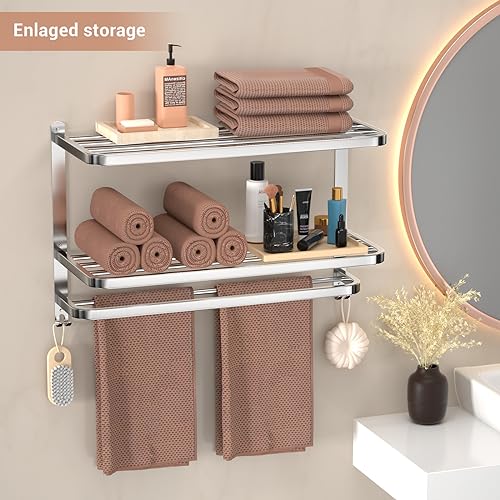DDS-DUDES - رف مناشف للحمام مع قضبان للتعليق من 3 طبقات من دي دي اس دودز، رف مناشف متعدد الطبقات من الفولاذ المقاوم للصدأ يثبت على الحائط بلمسة نهائية مصقولة مع أرفف للمناشف مقاس 60 سم
