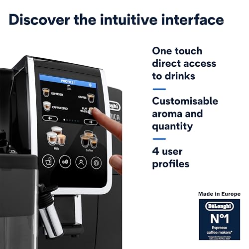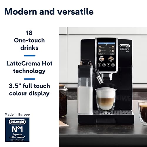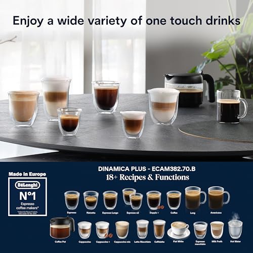 De'Longhi - De'Longhi Dinamica Plus ECAM382.70.B Automatic Coffee Maker for Coffee Beans, Cappuccino Machine with LatteCrema Hot Espresso Machine, Cup with 18 Recipes, TFT Display 8.9 cm (3.5 Inches) 1450 W,