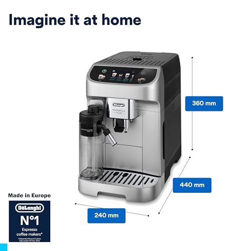 De'Longhi - De'Longhi ECAM322.70.SB Magnifica Plus Automatic Coffee Maker with LatteCrema Hot, Bean to Cup Espresso Maker with 18 One-Touch Recipes, Full Touch Control Panel,