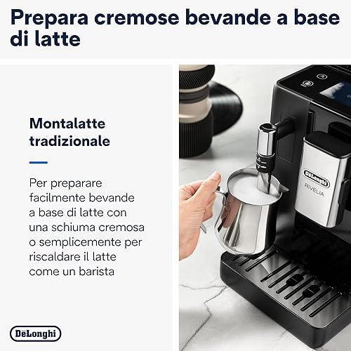 De'Longhi - ديلونجي ماكينة تحضير القهوة EXAM440.35.B من ريفيليا مع صانع رغوة الحليب، حاوية حبوب قهوة قابلة للازالة، 8 مشروبات قهوة بضغطة زر، وظيفة التقاط اضافية، شاشة لمس 3.5 انش، اسود اونيكس