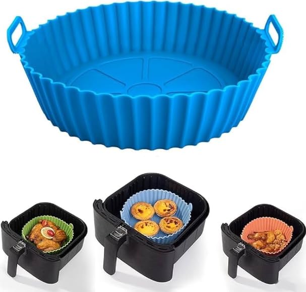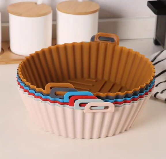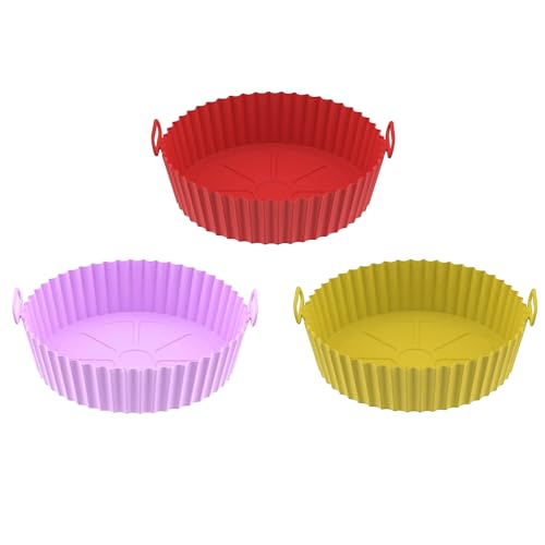 DE LUJO - مجموعة أطباق سيليكون للمقلاة الهوائية من دي لوجو دي لوجو، غير قابلة للاشتعال، بديل اقتصادي لورق البرشمان - ارتفاع 5 سم لحماية وتنظيف المقلاة بسهولة - 3 قطع
