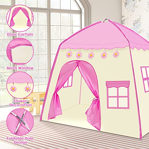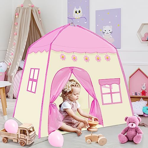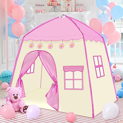 deAO - خيمة لعب للبنات والأطفال الصغار من دياو، تصميم على شكل قلعة الأميرة للاستخدام الداخلي والخارجي، مصنوعة من قماش أوكسفورد، وردي