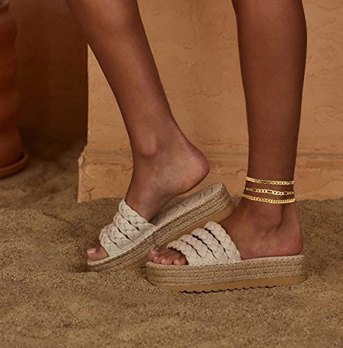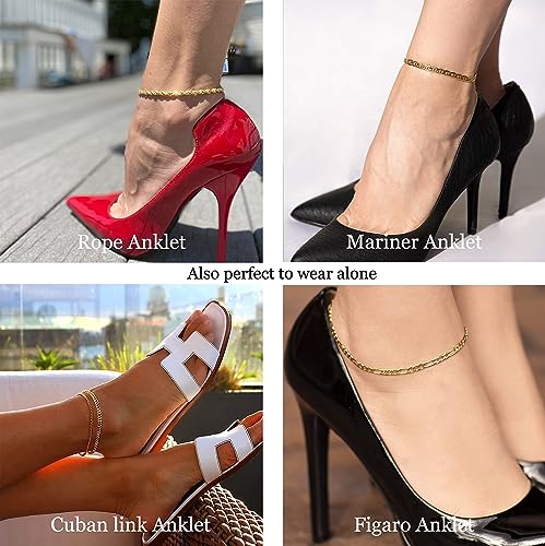 DEARMAY - DEARMAY Gold Anklets for Women Waterproof Ankle Bracelets for Women 14K Gold Plated Cuban Link Anklet Bracelets for Women Layered Herringbone Cute Anklets Set Jewelry Gift for Women Teen