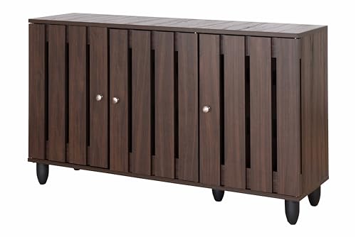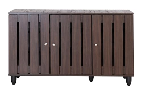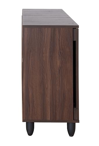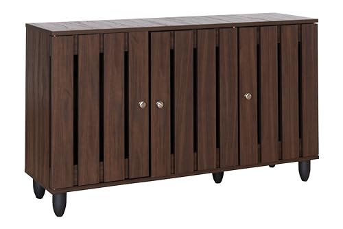 DeckUp - رف احذية خشبي هندسي بثلاثة ابواب من ديك اب مينانج خشب الجوز لمسة نهائية غير لامعة