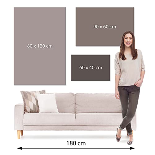 - الحجم الإجمالي: تقريبًا 90 × 60 سم (العرض × الارتفاع) - لوحة واحدة، لوح صوتي سميك، قماش ممدود يدويًا، عازل للصوت