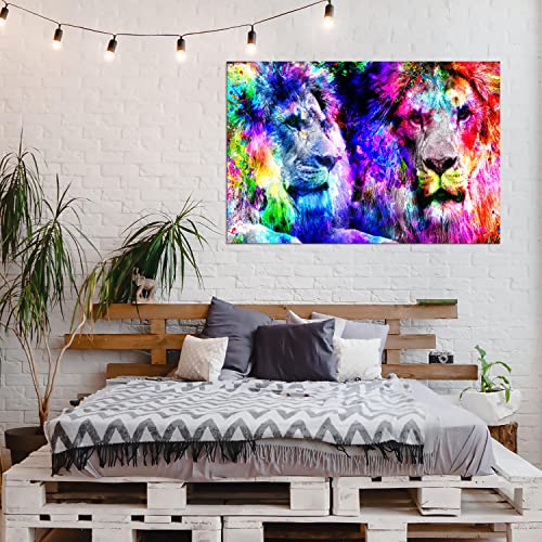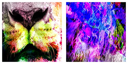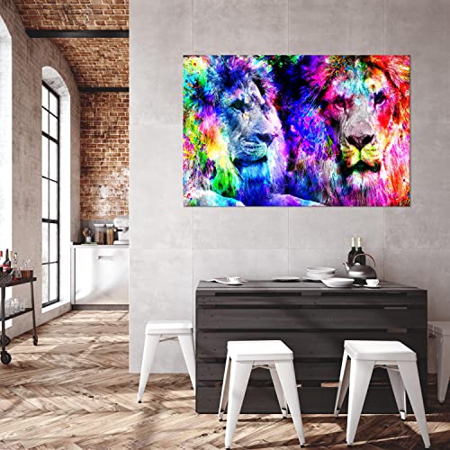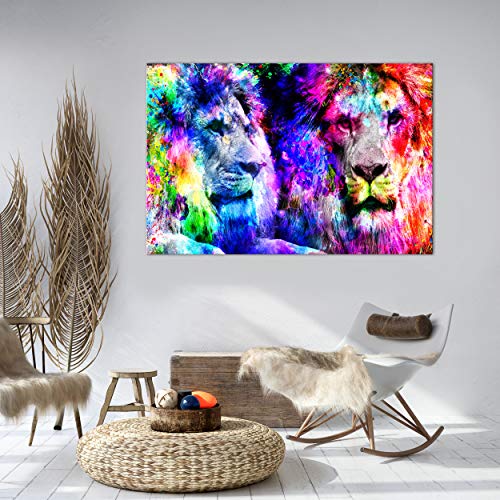 decomonkey - تابلوه قماش معزول صوتيا بصورة حيوانات تجريدية من ديكو مونكي 90×60 سم ديكور مودرن مشدود ملون اسد قطعة واحدة