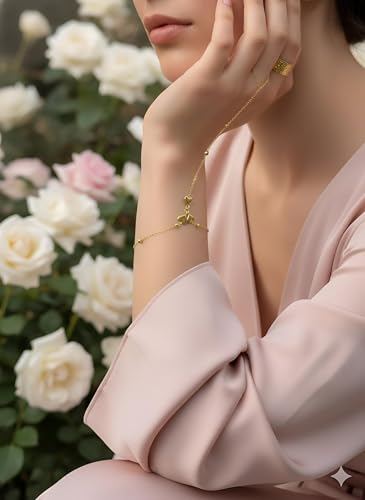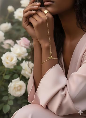 Generic - Decor - Gold Hand Chain with Heart Charms and Finger Ring Chain, Adjustable for a Perfect Fit