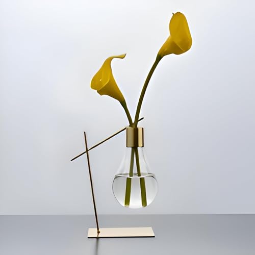 - A modern metallic vase with a unique bulb shape and elegant golden finish that instantly adds charm and sophistication to any room décor, whether at home or the office.