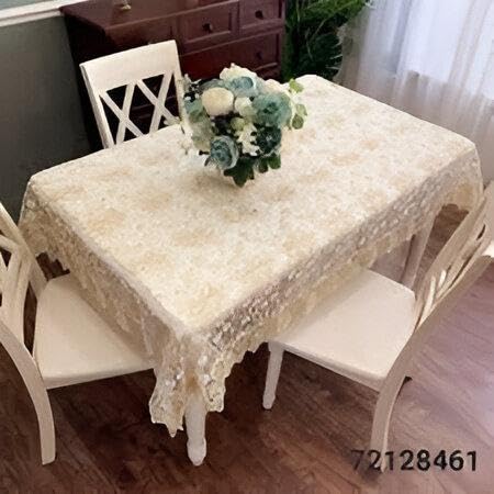 - Stylish tablecloth for room decor featuring aesthetic lace embroidery, designed as a center table cover for living rooms or dining areas; it protects and beautifies surfaces, is easy to clean, and adds durability for long life. It evokes happy dining moments and is perfect for daily family meals, parties, birthdays, or special holiday gatherings. Suitable for patios, gardens, kitchens, dining rooms, cafés, and family rooms, it pairs easily with home decor and makes meals both fun and relaxing. .