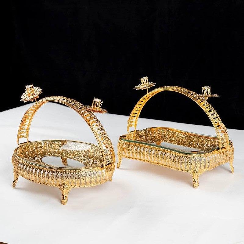 - Crafted from high-quality metal paired with sturdy glass, this serving plate is designed not only for beauty but also for lasting use, making it both stylish and enduring in daily hosting and special events.