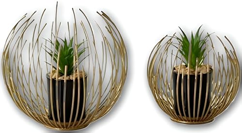 Generic - Decoration-Metal Gold Vase with a neat spherical cage design, containing green artificial plants, ideal for contemporary units, shelves and side tables. (2pcs large,medium)