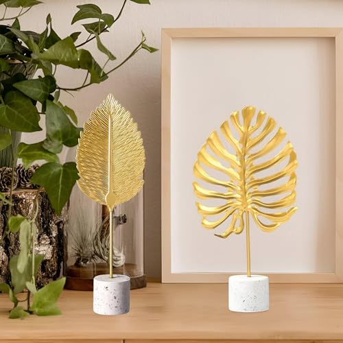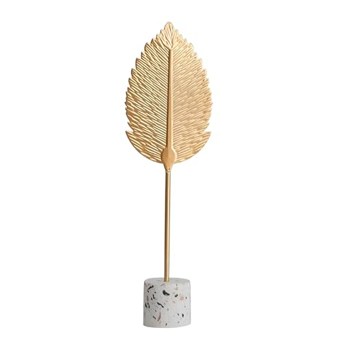 - This decorative piece is supported by a flat and sturdy cylindrical marble base that ensures stability and prevents tipping. The mix of solid marble with golden iron leaves reflects a Nordic-inspired minimalist style, highlighting both simplicity and sophistication in any decorative arrangement.