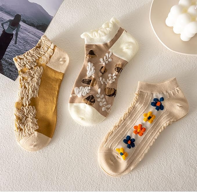 عام - Decorative Ankle Socks for Women Pairs Floral and Geometric Patterns Textured Design