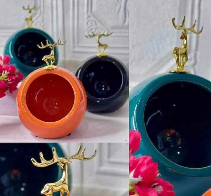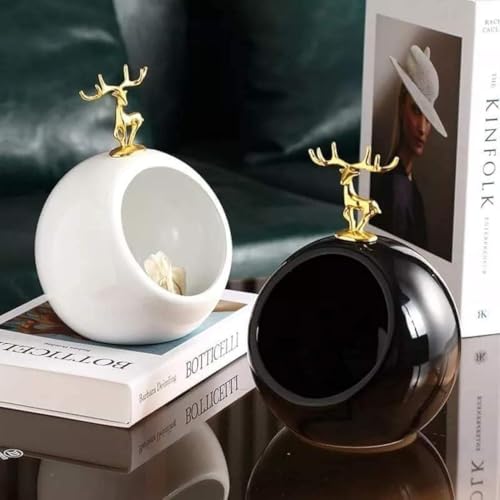 Generic - Decorative Ball Boboniera with Golden Deer Statue, Available in Black and White and Oil (Black)