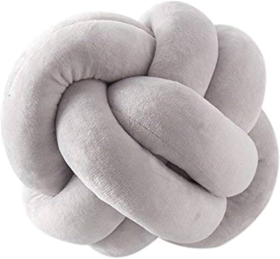 Generic - Decorative Ball Knot Pillow Hand Knotted Velvet Cushion Soft Round Cushion for Sofa Bedroom (Light Grey, Large)
