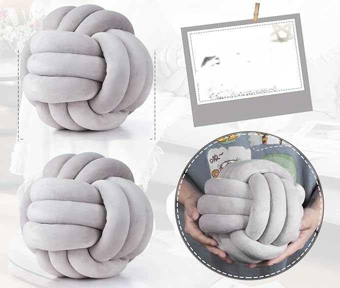Generic - Decorative Ball Knot Pillow Hand Knotted Velvet Cushion Soft Round Cushion for Sofa Bedroom (Light Grey, Small)