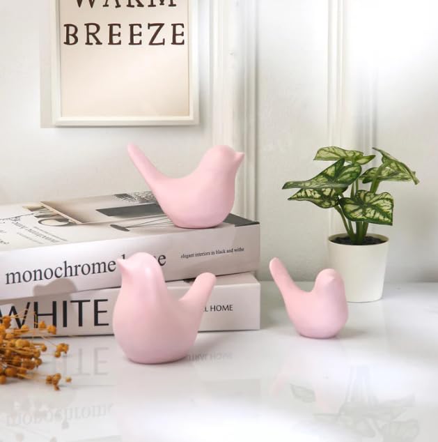 Decorative Bird Figurines, Pink Ceramic, Set of 3, Modern Home Decor
