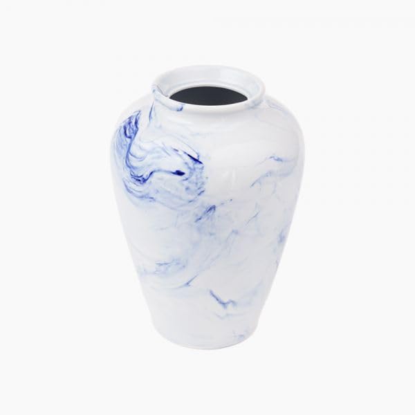 Generic - Decorative Ceramic Vase with Blue Marble Pattern, White and Blue, Modern Design