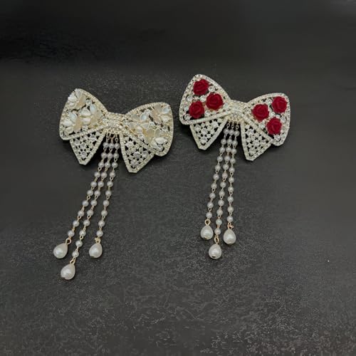 Generic - Decorative Clip - Stunning Bow and Flower Hair Accessory with Rhinestones and Faux Pearl Tassel, Great for Women’s Daily Fashion (2 pieces in the colors shown)
