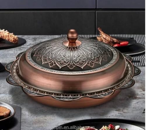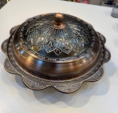 Generic - Decorative Copper Serving Tray with Lid, Traditional Arabic Design, 40 cm