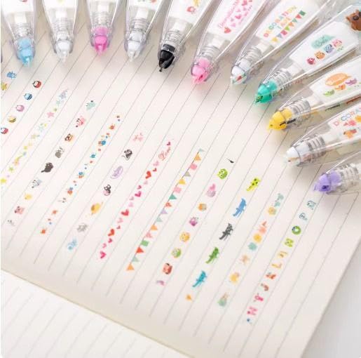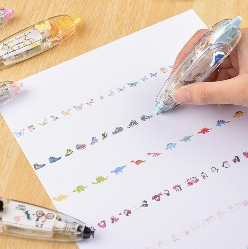 - موزع شريط زخرفي: شريط تصحيح مبتكر بتصميم شفاف على شكل قلم مع أنماط رائعة بما في ذلك الفراشات والديناصورات والشخصيات للاستخدام المرح والعملي