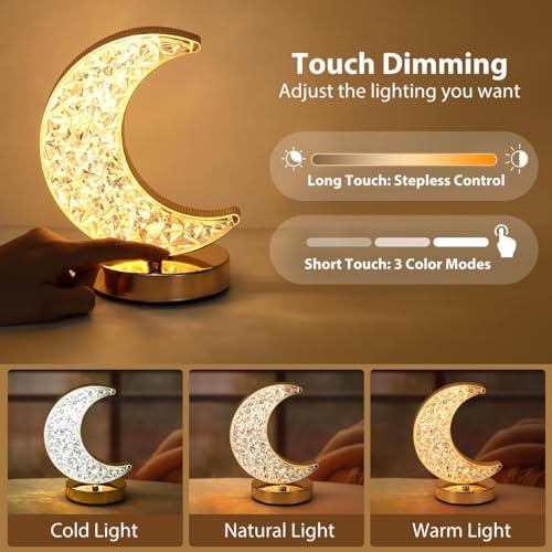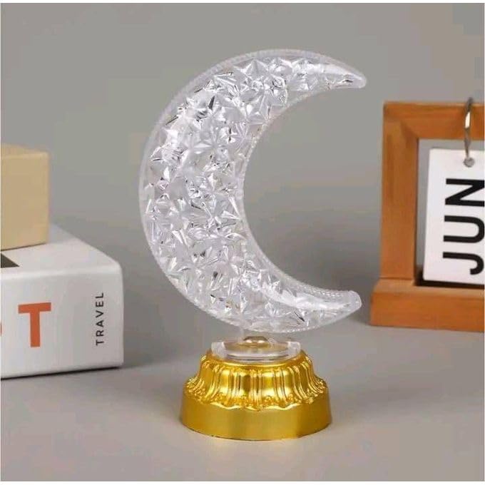 Generic - مبخرة كريستالية مزخرفة على شكل هلال مع اضاءة LED محيطة وقاعدة ذهبية انيقة للمنزل والمكتب والرف والمكتب والديكور الداخلي الحديث