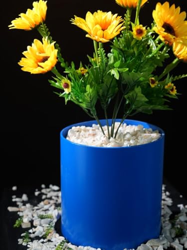 Generic - Decorative Cylindrical FRP-PVC Plant Pot, Blue, 20x20 cm, with Artificial Sunflowers, White Stone Filler