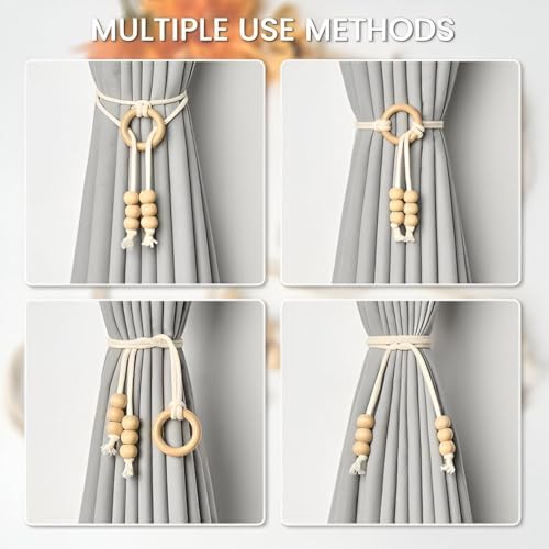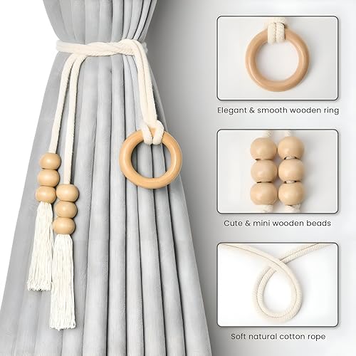 - Inspired by timeless aesthetics, the handwoven cotton rope design adds a soft and elegant touch to any curtain fabric, enhancing the overall beauty of your room. The wooden ring details provide a warm touch, making your space feel inviting.