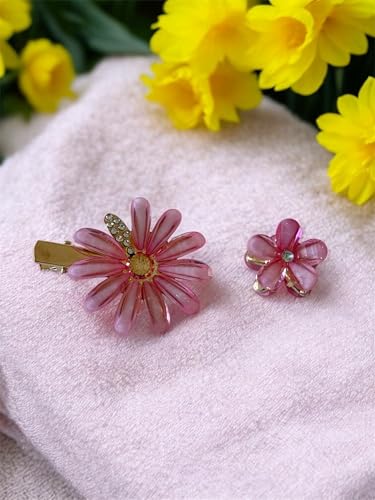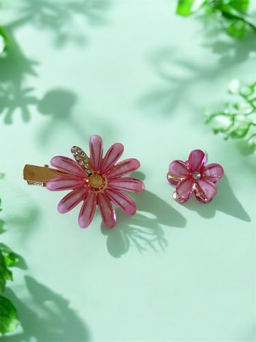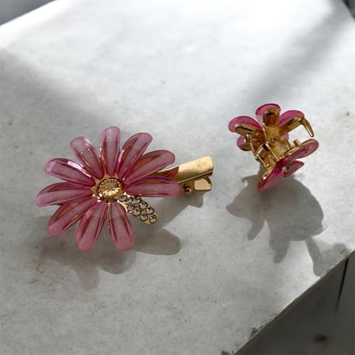 Generic - مجموعة مشابك شعر مزخرفة على شكل زهرة الاقحوان الكريستالية، مشابك معدنية على شكل تمساح، قطعتين (وردي)