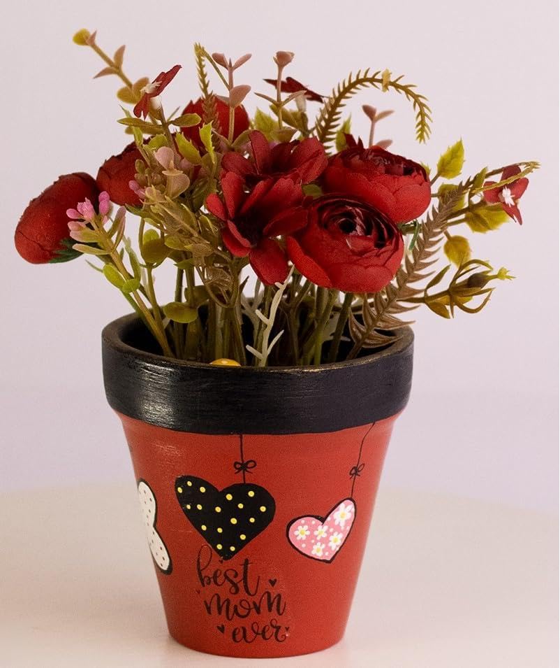 - CHARMING DESIGN: Features a vibrant red and black hand-painted terracotta pot adorned with decorative hearts and 'Best Mom Ever' lettering.