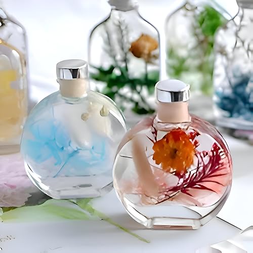 - This decorative round glass diffuser features dried flowers inside, creating a natural and elegant aesthetic that enhances the ambiance of any indoor space with a touch of sophistication.