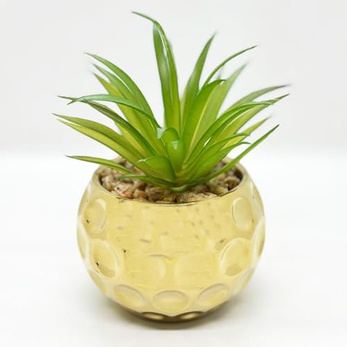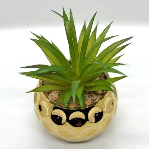 Generic - Decorative Glass Planter with Artificial Succulent Plant, Gold Honeycomb Pattern (1, Round)
