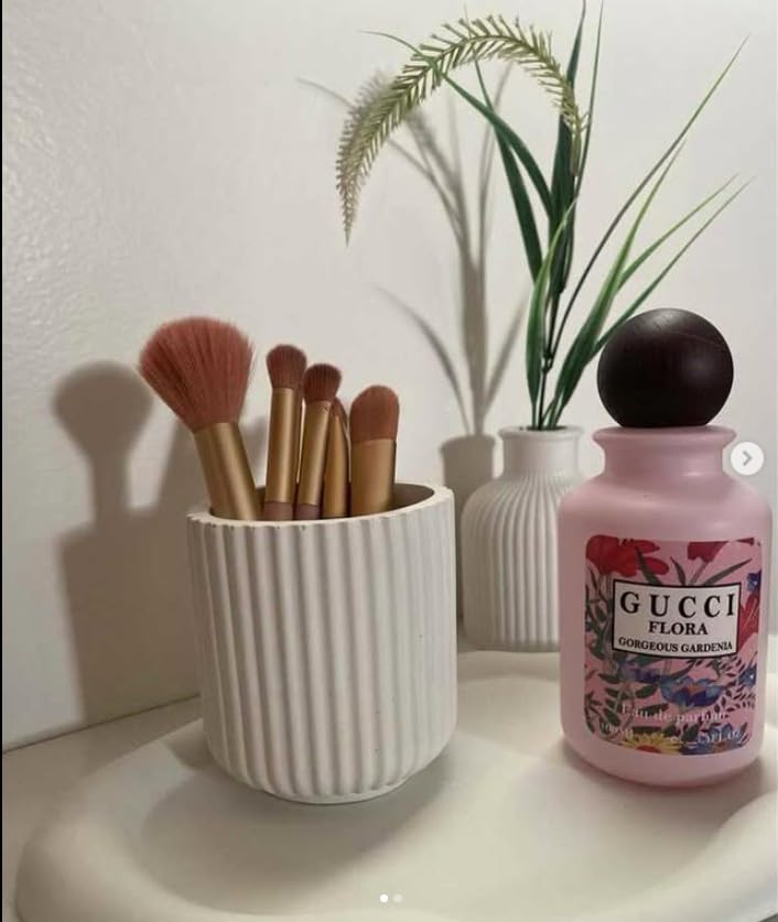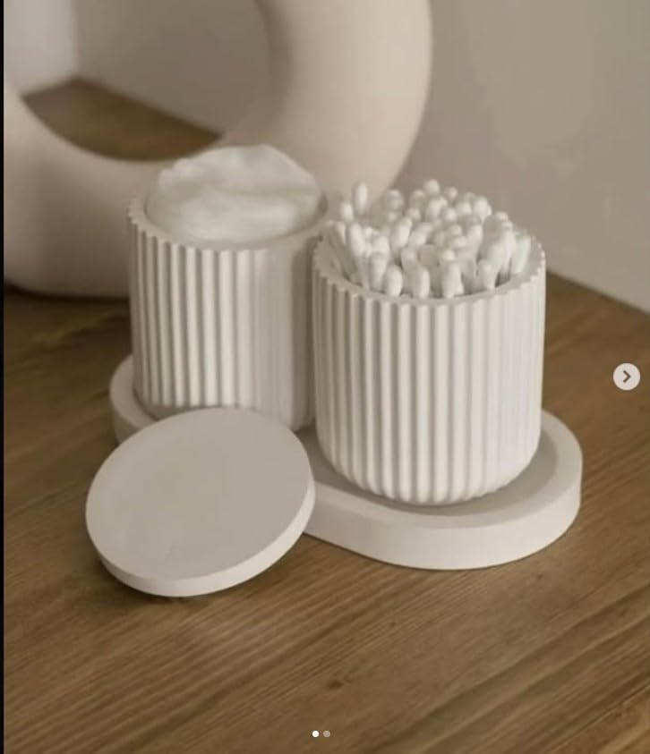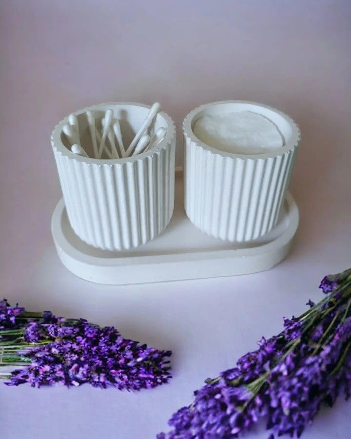 - ELEGANT DESIGN: Beautiful gypsum organiser set featuring two cylindrical containers with ribbed texture and a matching base coaster in pristine white